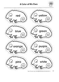For Pre-K, I read A color of his own by Leo Lionni. This book is just an introduction to the many different colors that even the same species can have. I found a great worksheet for them to work on while we do check out. It is a page of chameleons from the book with the color printed in the chameleon. They should recognize the words and color that chameleon that color.