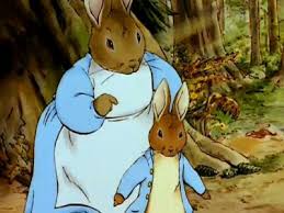 With rabbits in mind, I thought of Beatrix Potter and found the best youtube 2 part version of The tale of Peter Rabbit and Benjamin Bunny. In addition to exposing the PreK, K, and 1st graders to the world of Beatrix Potter, this video (which went exactly by the book, illustrations and all) really kept their attention. There is nothing like being on the edge of your seat waiting to see if mean Mr. McGregor catches Peter and puts him in a pie.